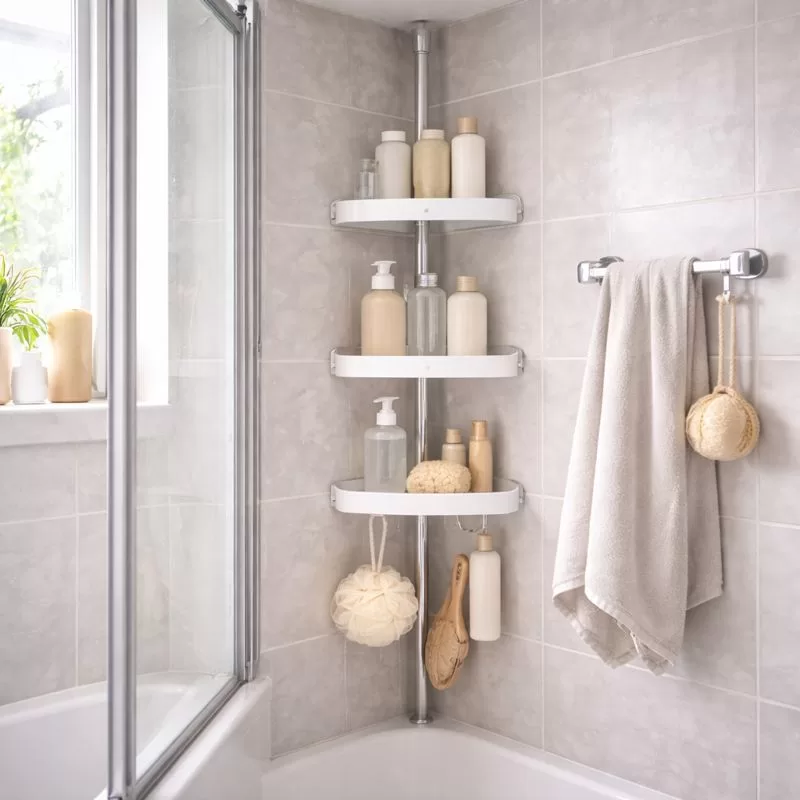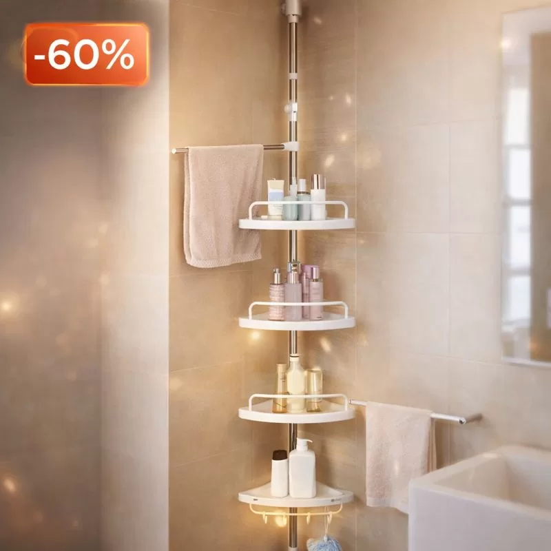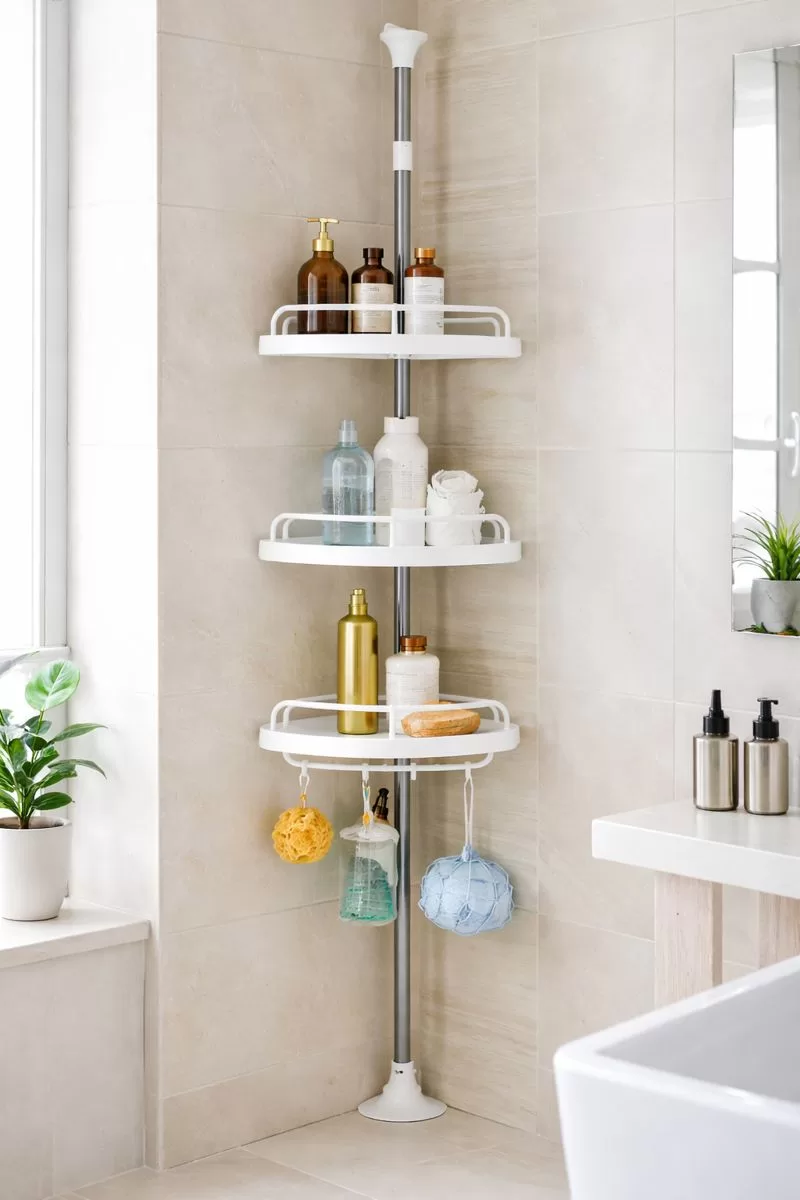 See on teleskoopiline nurgapost-riiul duši ja vannitoa jaoks. See paigutub kenasti nurka ja lisab hoiuruumi, ilma et võtaks ruumi. Sobib hügieenitoodetele, tarvikutele ja kodustele pisiasjadele.
